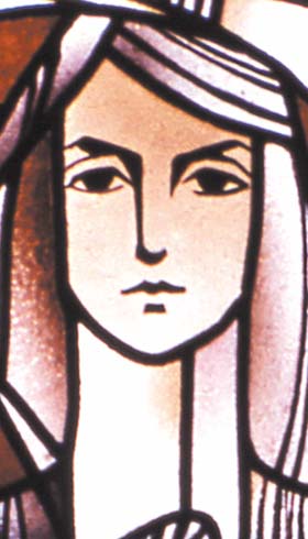 The first window at the entrance presents the company's logo. The blue flower, a key element in the logo, is woven, as a binding theme, throughout the other windows. A muse appears in the window on the second floor to serve as an inspiration for, and a protector of, the arts. The remaining three windows draw from, and extend, the themes developed in the first two windows. I used a white-glass border to remind the observer of a white matte found typically with traditional graphics. |